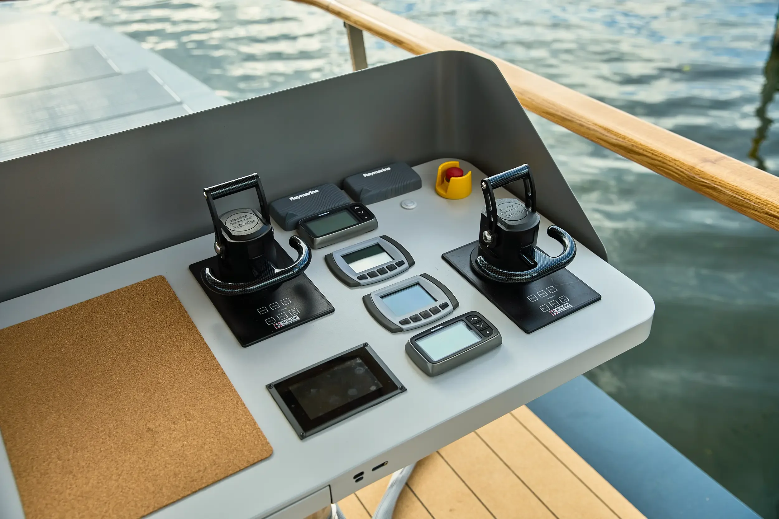 Kameras an allen vier Seiten erleichtern das Anlegen, eine Höhenwarnung sichert Brückendurchfahrten.